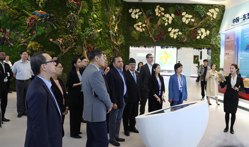 使節(jié)團(tuán)在中新物流園展示中心參觀考察