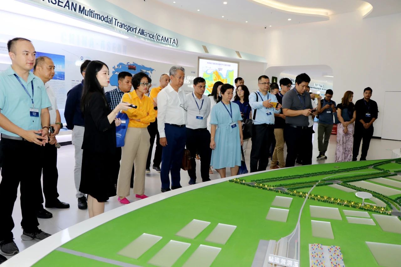 廣西新中產業(yè)投資有限公司總經理施國維對考察團的到訪致以熱烈的歡迎!在中新物流園展示中心,考察團詳細了解了建園初心、建設進展、園區(qū)定位與發(fā)展前景等內容。