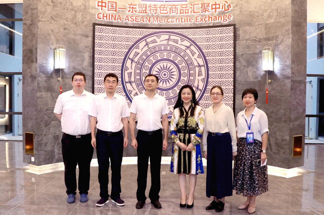在匯聚中心,調(diào)研組一行認(rèn)真聽取了項目的建設(shè)運營情況介紹,認(rèn)為匯聚中心獨具特色的創(chuàng)新理念令人印象深刻,不僅線下展館設(shè)計十分出彩,巧妙地將東盟各國的特色文化及藝術(shù)融入其中,而且通過線上數(shù)字化平臺,形成線上線下聯(lián)動,促成商家達成合作。