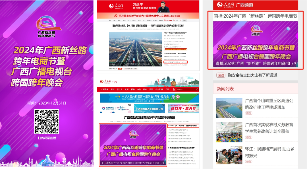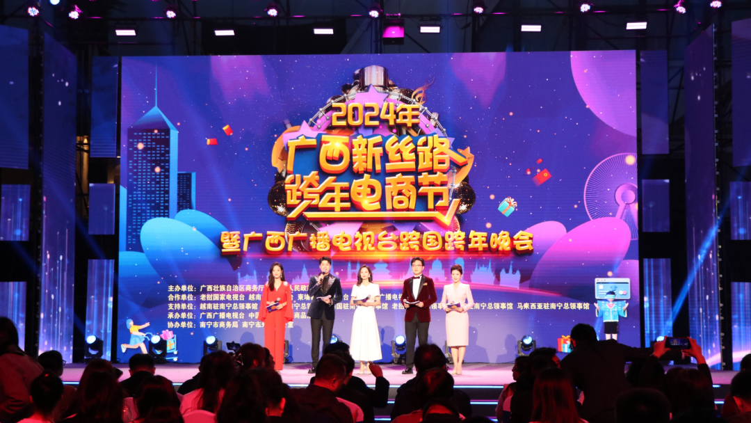 網(wǎng)羅八桂優(yōu)品、東盟好物,共赴e場消費(fèi)盛宴。由廣西壯族自治區(qū)商務(wù)廳聯(lián)合南寧市人民政府,聯(lián)動越南、柬埔寨、泰國、老撾、緬甸、馬來西亞駐南寧總領(lǐng)事館共同舉辦的2024年廣西新絲路跨年電商節(jié)暨廣西廣播電視臺跨國跨年晚會在國內(nèi)主會場廣西南寧市中國—東盟特色商品匯聚中心(以下簡稱“匯聚中心”)、海外分會場老撾萬象國家文化宮同步精彩啟幕。