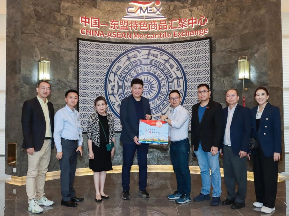 2024年6月6日,泰國工業(yè)聯(lián)合會副主席維迪·左瓦塔那率由泰國地方政府部門、商協(xié)會及企業(yè)家組成的考察團(tuán)到中國—東盟特色商品匯聚中心(簡稱“匯聚中心”)參觀交流。中國—東盟特色商品匯聚中心總經(jīng)理林哲宇熱情接待了考察團(tuán)一行。