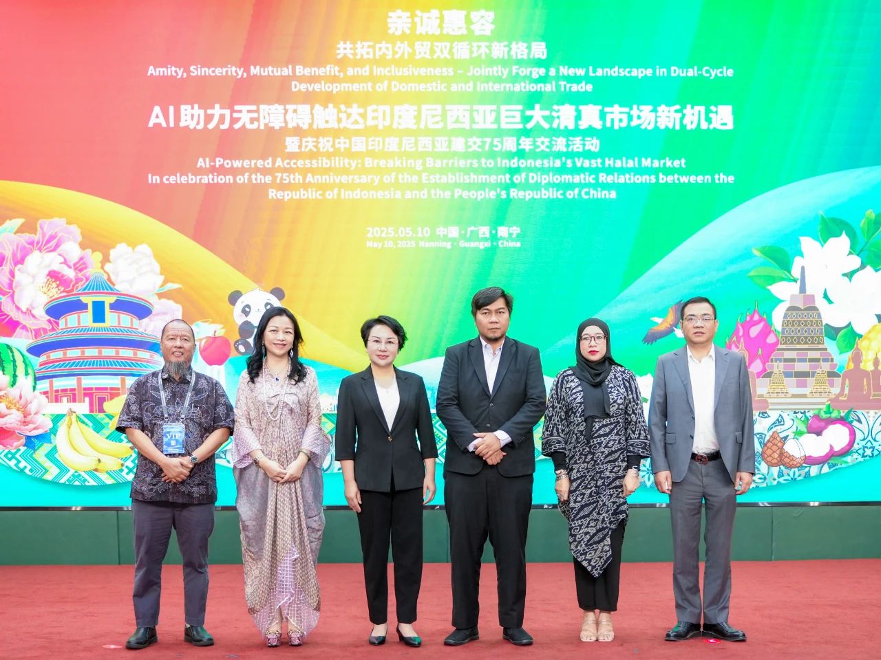 邕江潮涌,梭羅風(fēng)至——五月商機正當時,2025年5月10日,“親誠惠容·共拓內(nèi)外貿(mào)雙循環(huán)新格局——AI助力無障礙觸達印度尼西亞巨大清真市場新機遇暨慶祝中國印度尼西亞建交75周年交流活動”在中國—東盟特色商品匯聚中心(簡稱“匯聚中心”)隆重舉行。此次活動由廣西壯族自治區(qū)商務(wù)廳、中國—東盟特色商品匯聚中心主辦,印度尼西亞共和國駐廣州總領(lǐng)事館、中國—東盟博覽會秘書處、廣西壯族自治區(qū)歸國華僑聯(lián)合會協(xié)辦。