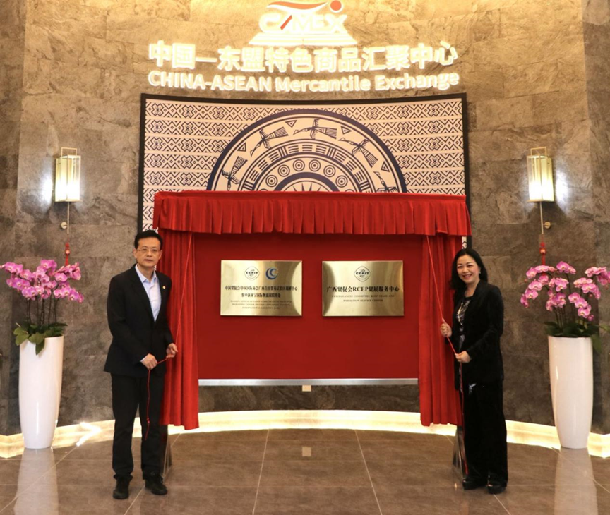 2022年11月15日,中國(guó)貿(mào)促會(huì)/中國(guó)國(guó)際商會(huì)廣西自由貿(mào)易試驗(yàn)區(qū)調(diào)解中心駐中新南寧國(guó)際物流園(以下簡(jiǎn)稱(chēng)“中新物流園”)聯(lián)絡(luò)處和廣西貿(mào)促會(huì)RCEP貿(mào)展服務(wù)中心在中國(guó)—東盟特色商品匯聚中心(以下簡(jiǎn)稱(chēng)“匯聚中心”)正式揭牌。廣西貿(mào)促會(huì)黨組書(shū)記、會(huì)長(zhǎng)魏然,廣西新中產(chǎn)業(yè)投資有限公司董事長(zhǎng)/中國(guó)—東盟特色商品匯聚中心董事長(zhǎng)趙海燕等相關(guān)領(lǐng)導(dǎo)共同見(jiàn)證了本次揭牌活動(dòng)。