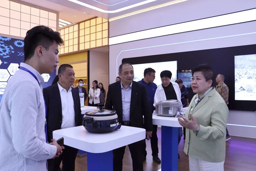考察團(tuán)在匯聚中心展館了解入駐產(chǎn)品情況